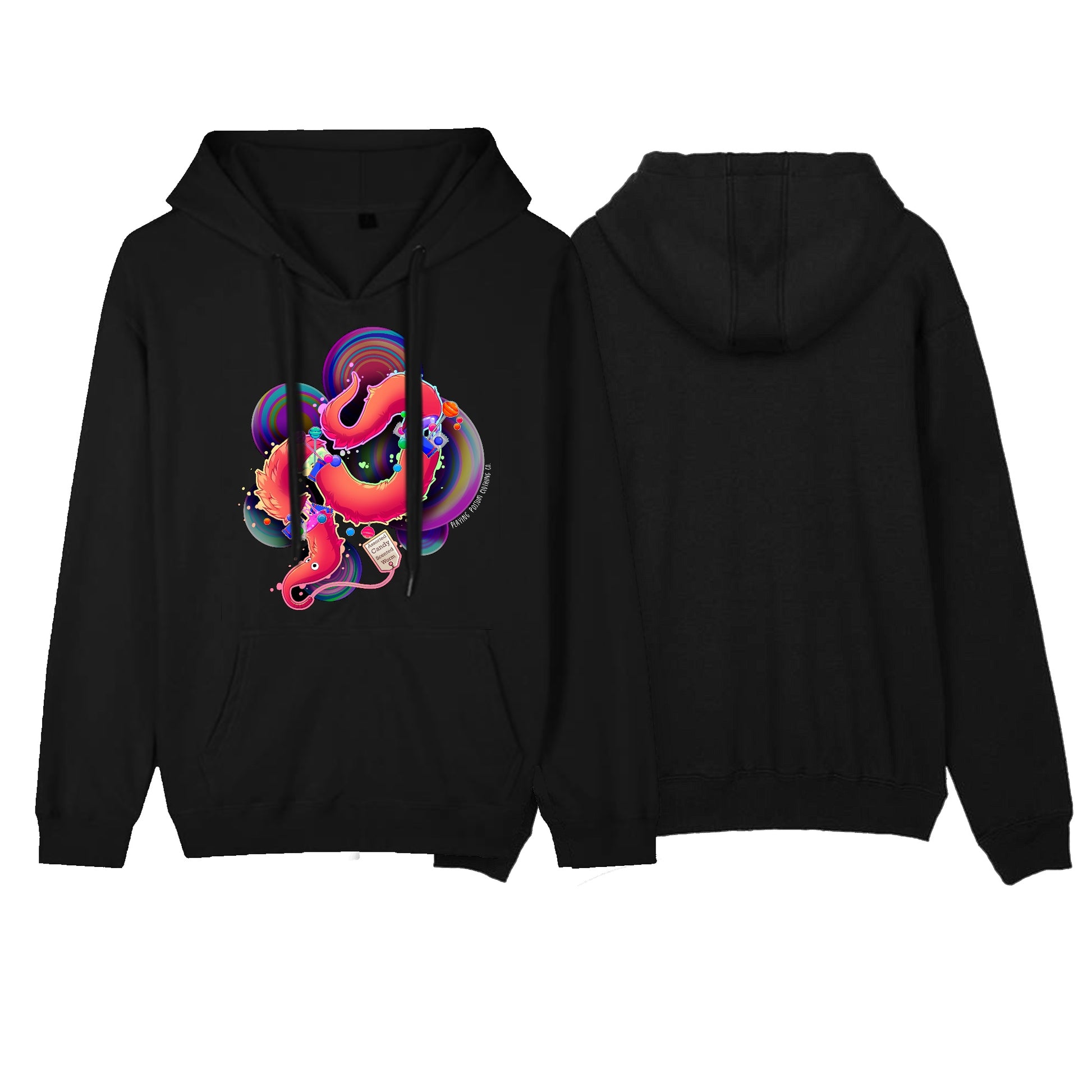 An ultra-soft, blanket hoodie lined with a plush, polyester blanket material. Cotton exterior with crisp, flexible printing. Dropped shoulders, a large hood and loose, stretchy wrist cuffs for a comfortable fit.